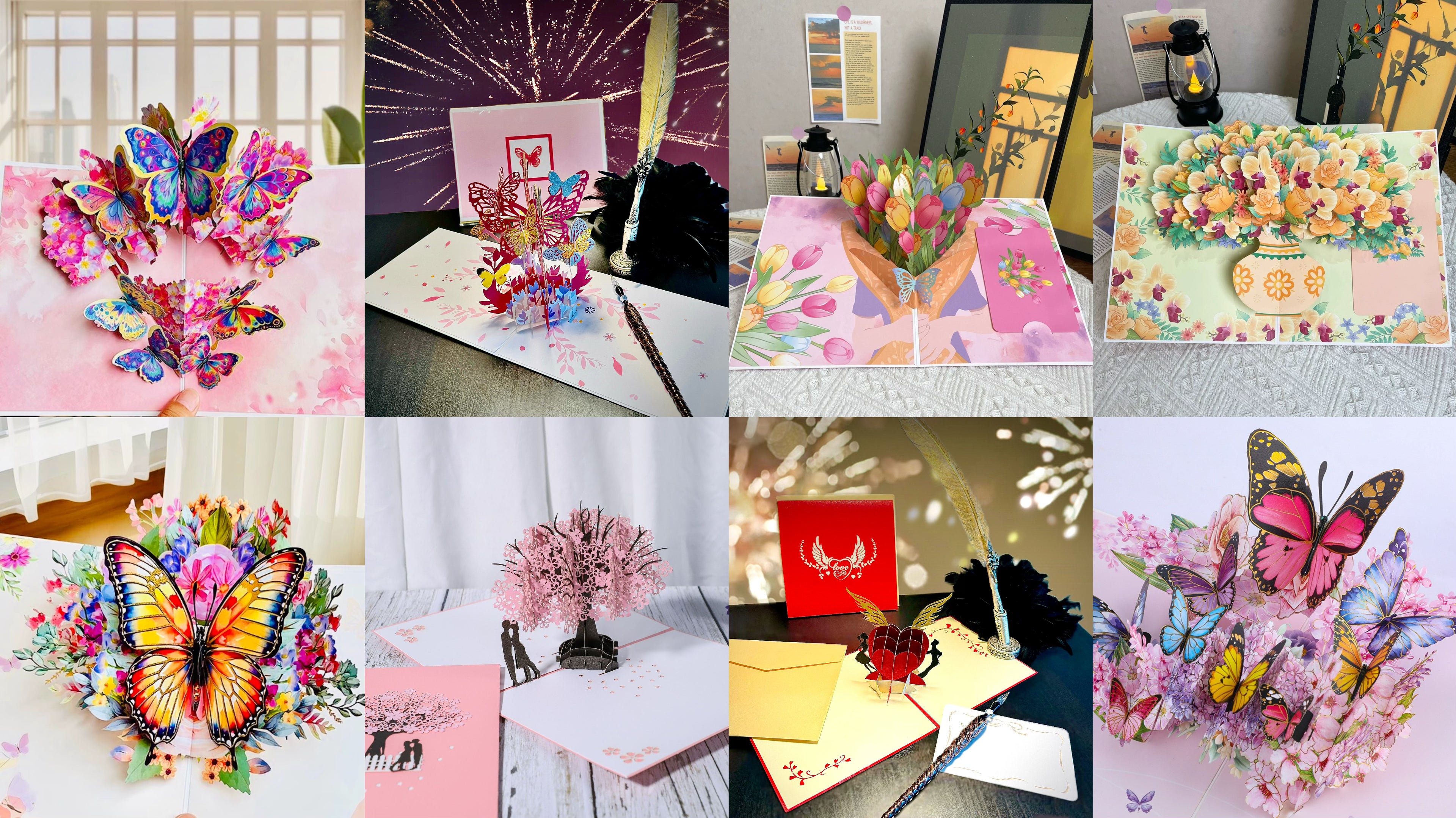 3D Pop-Up Schmetterling & Blumen & Herz Grußkarte
