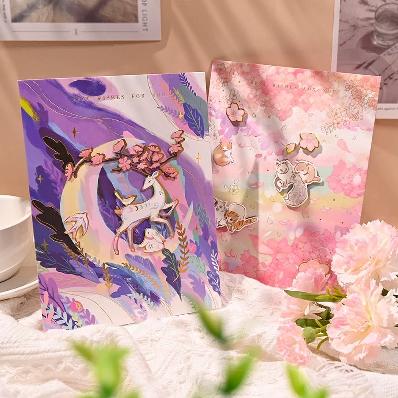 3D Pop-Up elegante Mond&Hirsch Grußkarte